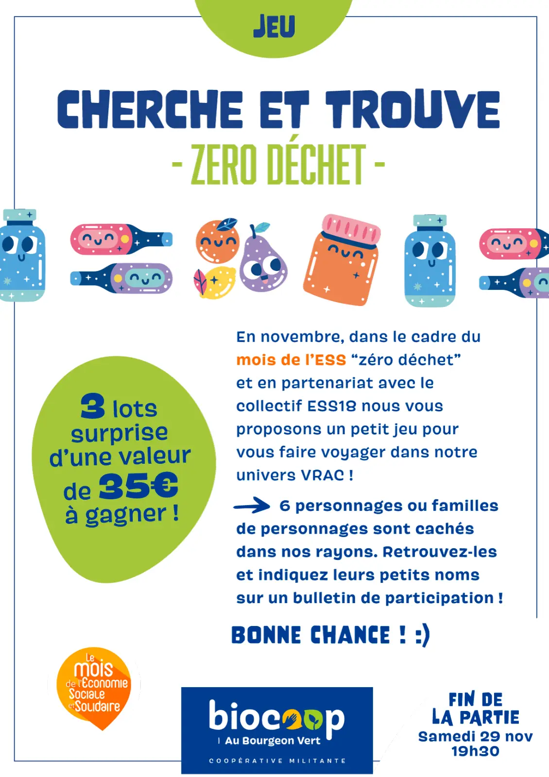 Du 1er novembre à 9h30 au 29 novembre à 19h30, partez à l’aventure dans nos rayons avec notre Jeu du Vrac – Spécial Zéro Déchet. 🕵️♀️♻️